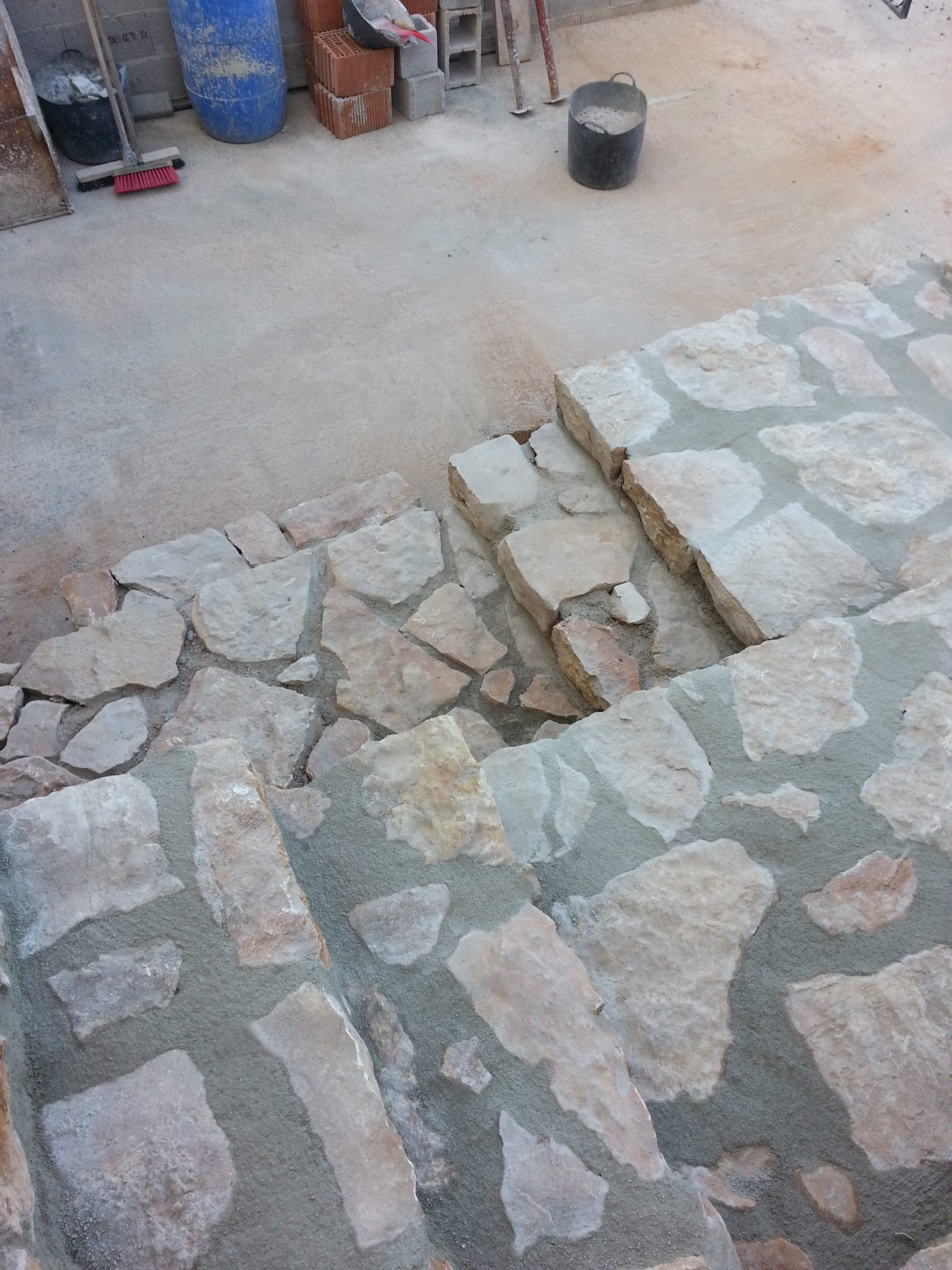Realizar una escalera en piedra, reciclando material existente en la parcela y enlazar con otra rampa de escalera existente. Un estilo rústico con juntas anchas y piezar grandes. Un resultado que se ajusta a la demanda del cliente, también un trabajo … bonito, de satisfación.